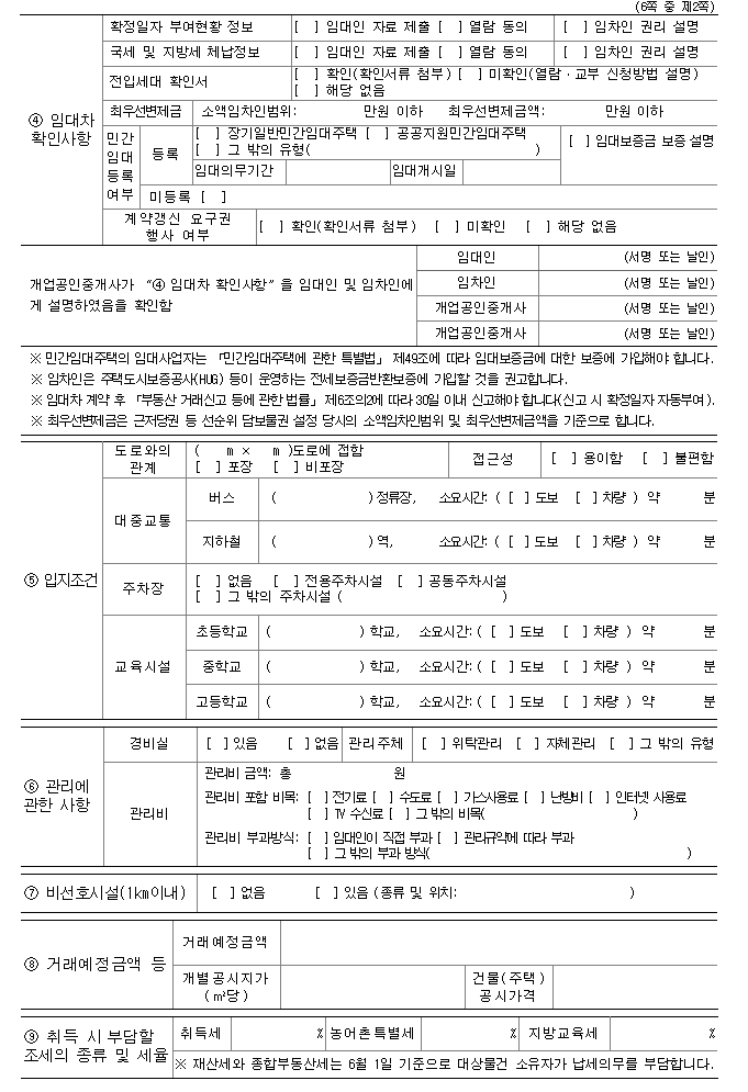 4) 임대차 확인사항(확정일자 부여현황, 국세 및 지방세 체납정보, 전입세대 확인서 등) 등